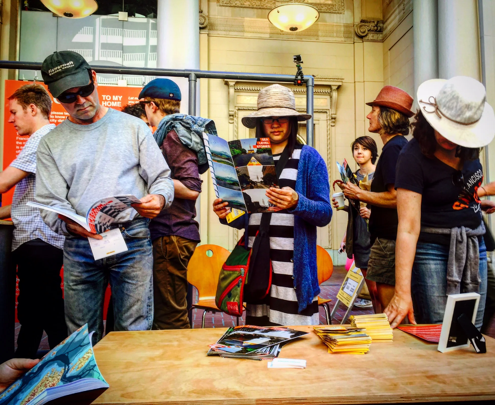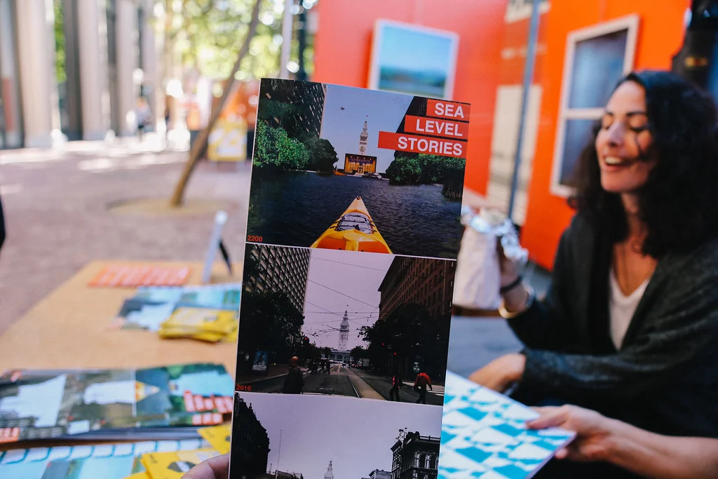 A time travel machine that doubled as on-the-street-living room, data visualization and narrative collection tool, Sea Level Stories invited participants to explore how sea level rise could change the San Francisco Bay Area – in the past, present and future – and share thoughts on what those impacts meant to you. With financial support from UFC, Sea Level Stories was installed on San Francisco’s Market Street as part of the 2016 Market Street Prototyping Festival.